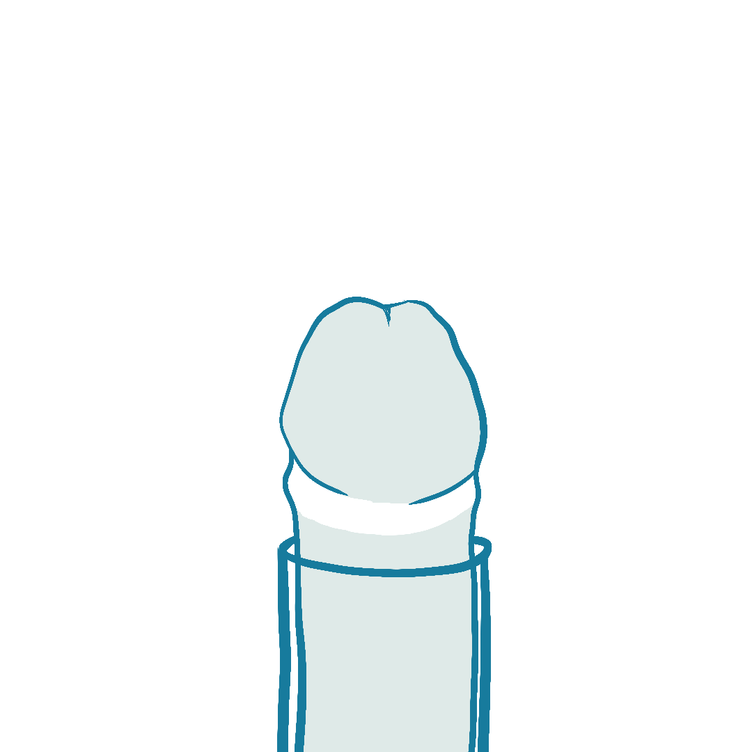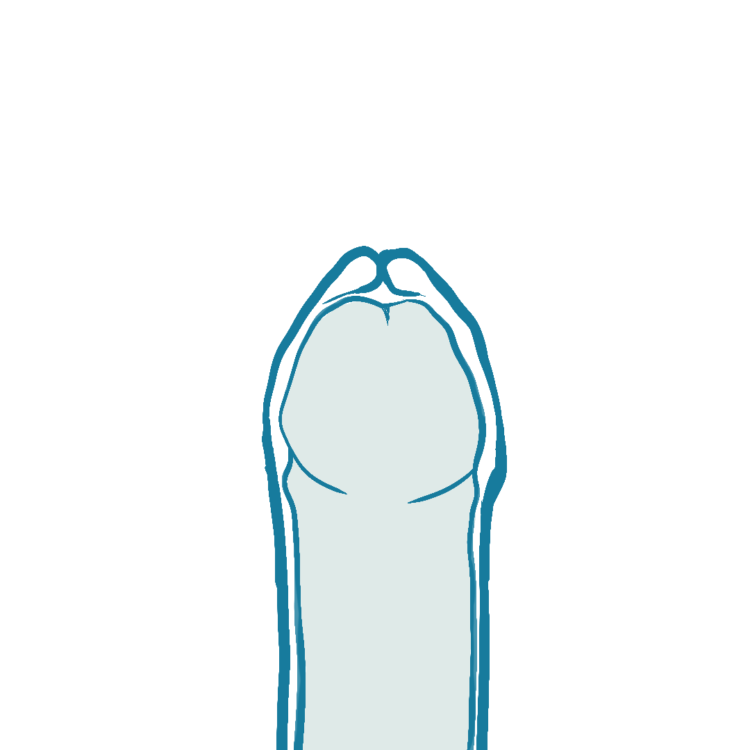 Dies ist die klassische Beschneidungsvariante, wie sie derzeit fast überall durchgeführt wird. In diesem Fall wird fast die gesamte Vorhaut unter Belassung von maximal 5 mm des inneren Blattes entfernt. Ich empfehle diesen Beschneidungsstil ausschließlich Patienten, die zu viel Gefühl haben, also unter einem vorzeitigen Samenerguss leiden. Sonst nicht. Damit es meinen Patienten nach dem Eingriff problemlos möglich ist, eine Erektion zu bekommen, lässt man immer mehr vom äußeren Vorhautblatt übrig. Beim inneren Vorhautblatt sollten immer mindestens 7 mm bis 1 cm belassen, um etwaige Korrekturen zu ermöglichen.